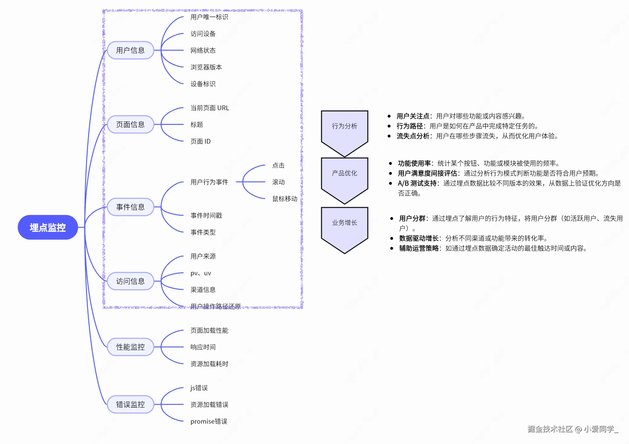 埋点是指在系统(通常是前端)中,通过在代码中插入采集点(或在后台动态配置规则),来记录用户行为数据的一种技术手段。