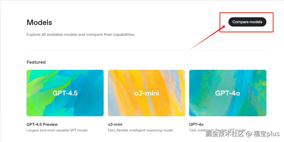 OpenAI推出一个模型对比页面,可以轻松查看每个模型的功能细分,并并排比较模型。