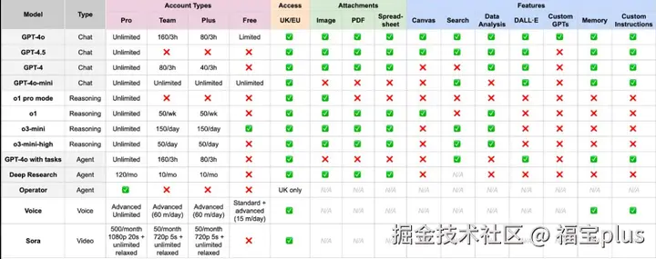 一图看清 ChatGPT 不同模型和订阅之间的差别,总结来说就是