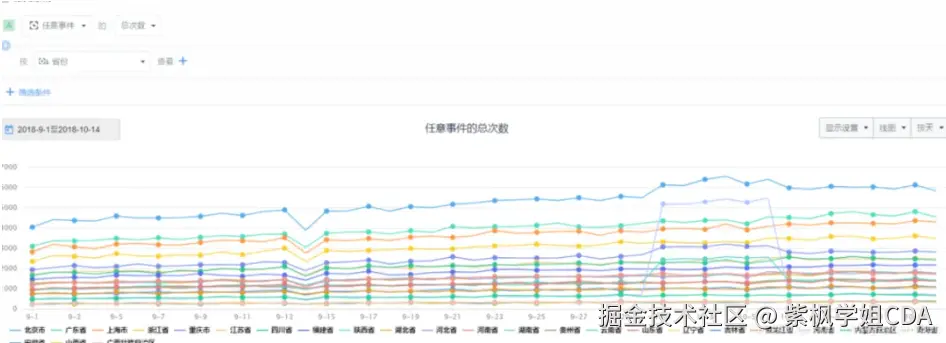 确定原因:那是不是哪个省份出了问题呢?下面我们按省份进行查看,由下图可以看出,这次数据的猛跌是全国范围内的,基本上所有的省份都有下迭,这样就排除了某个区域下跌的原因。