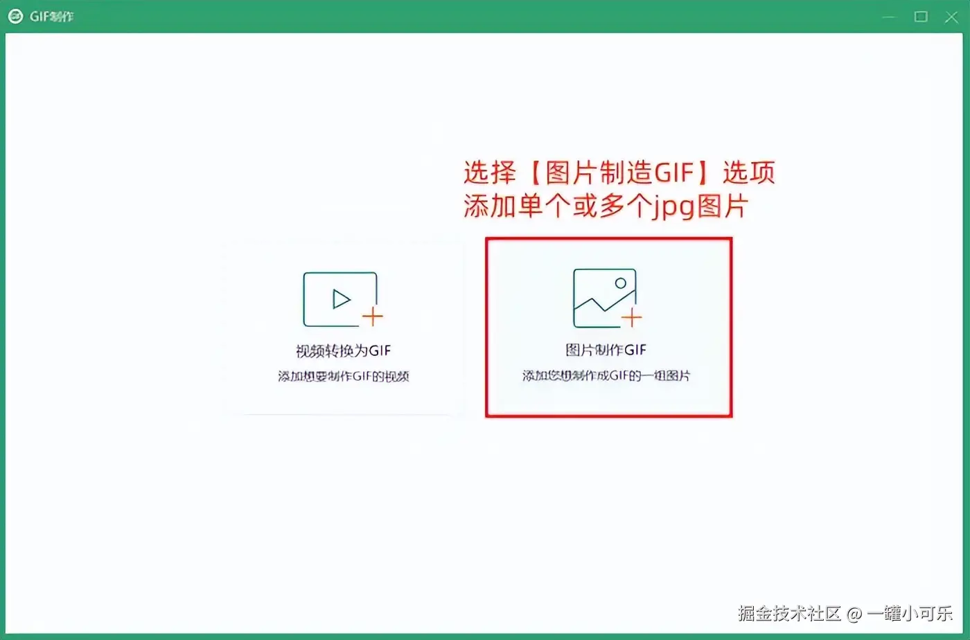 第二步:选择文件添加界面上的【图片制造GIF】选项,添加单个或多个jpg图片。