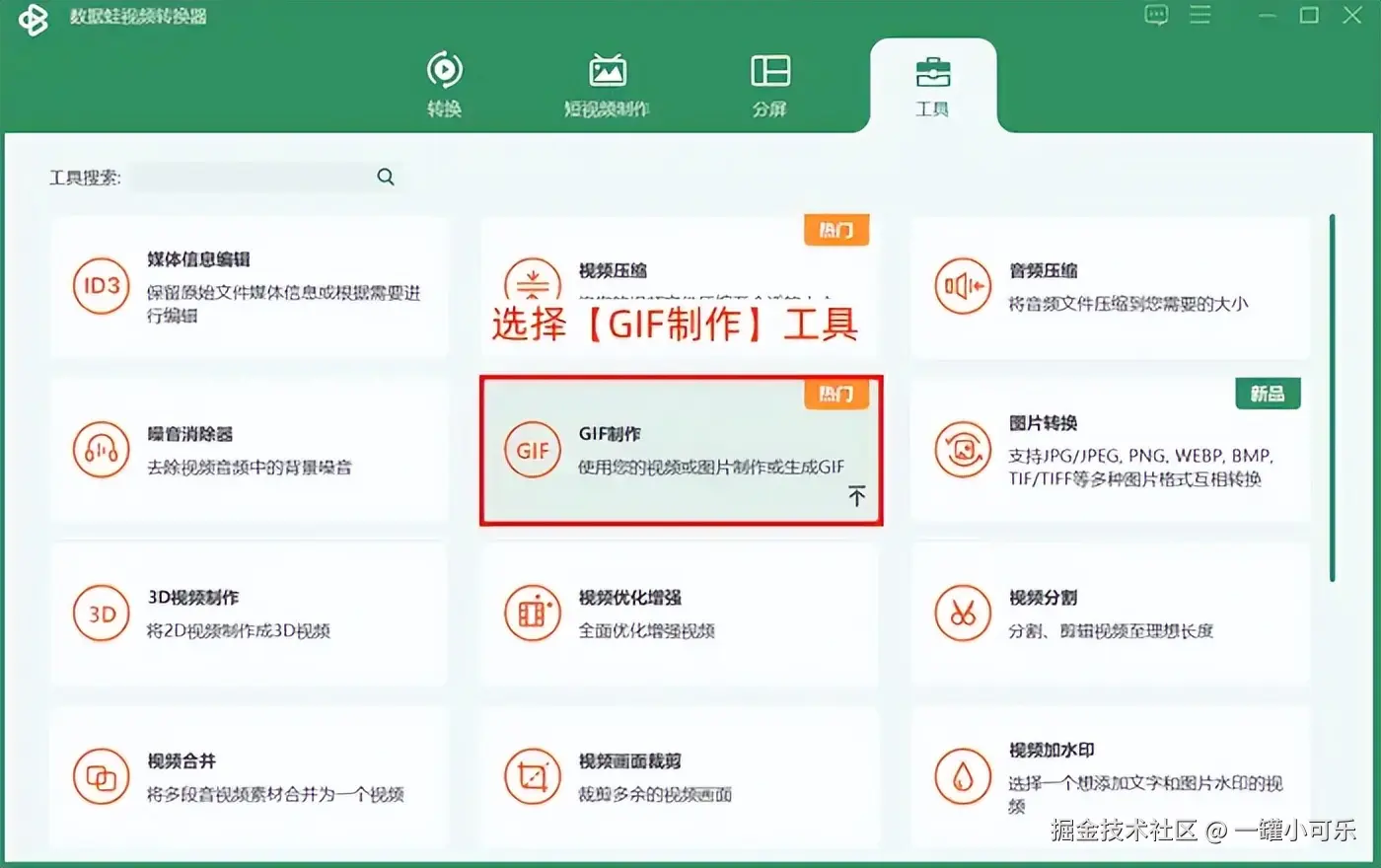 第一步:双击该应用图标并运行,在工具选项界面下,选择【GIF制作】工具。