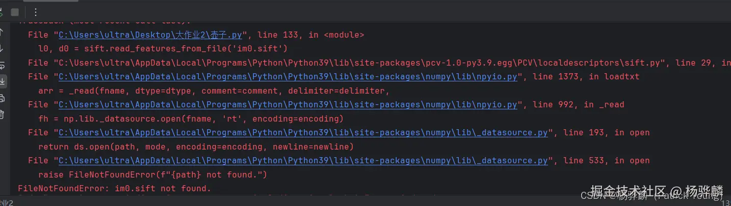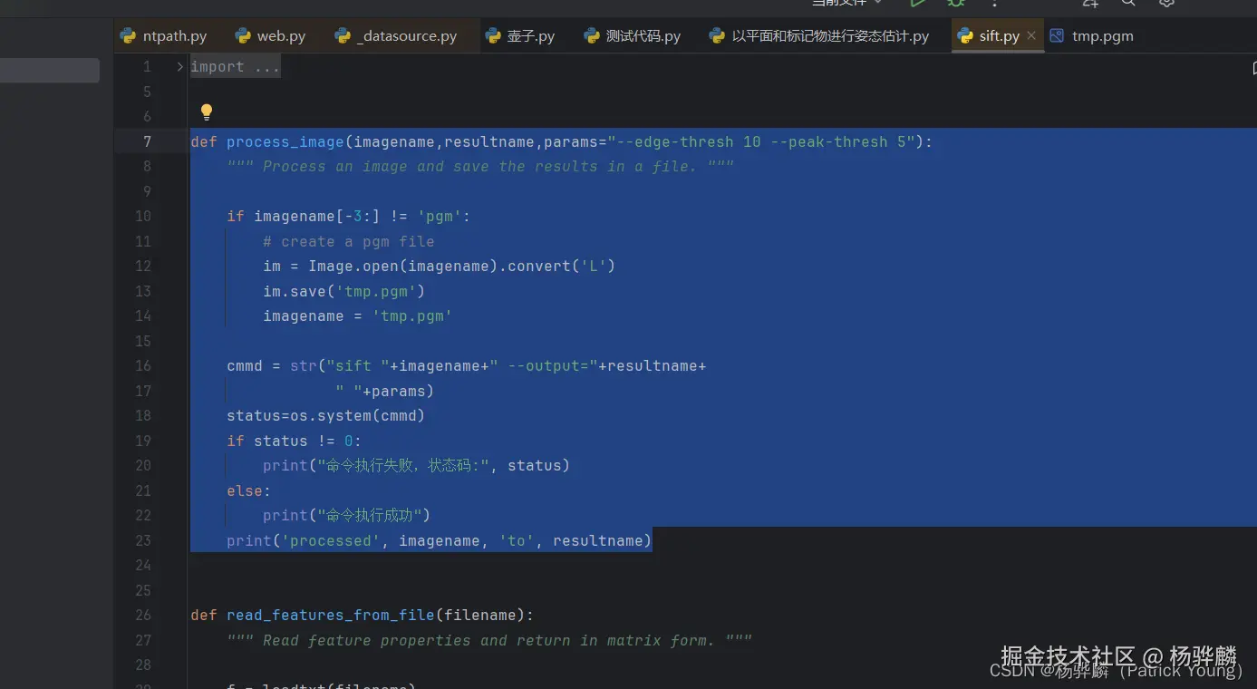 在使用PCV库的SIFT文件时候,有这样几行代码一直报错,就是process_image这个函数