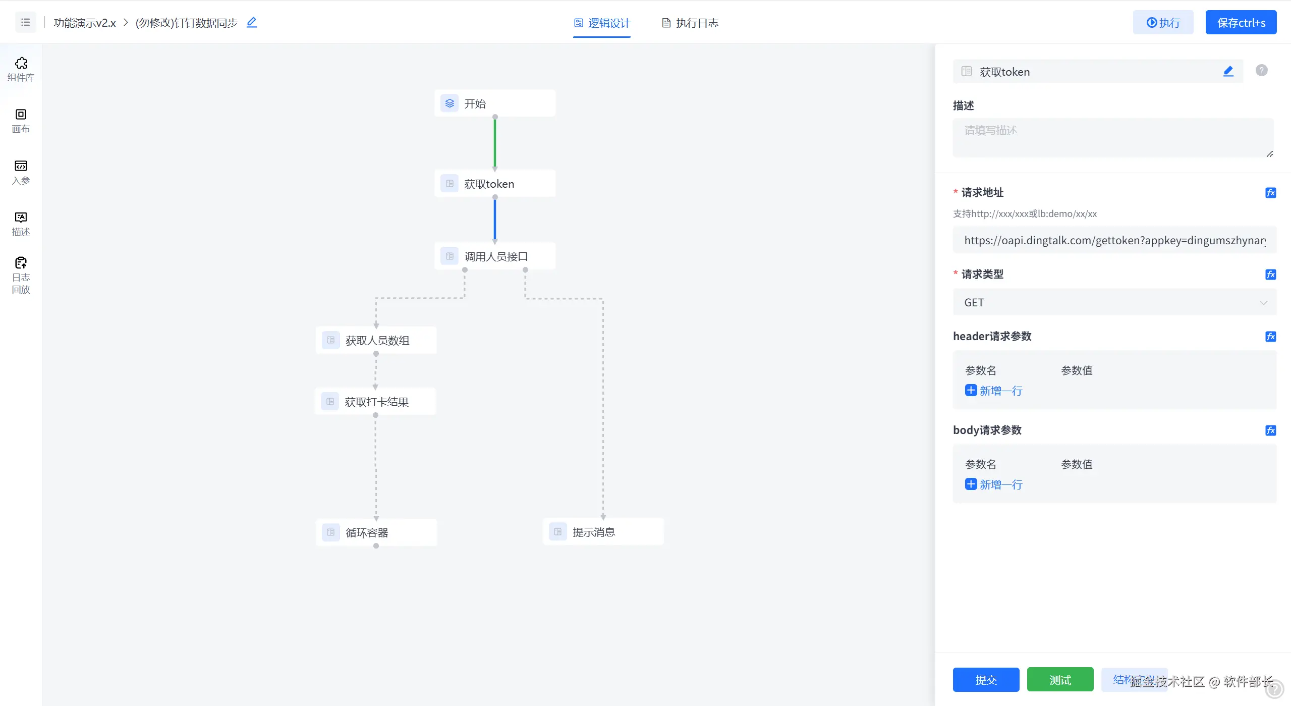• 可视化编排:通过拖拽组件连接原子服务(如数据库查询、API调用),无需编写代码即可构建复杂流程。