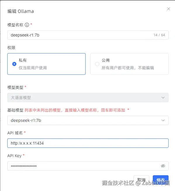 3.4 配置模型参考二(基于Ollama私有化部署的deepseek)
