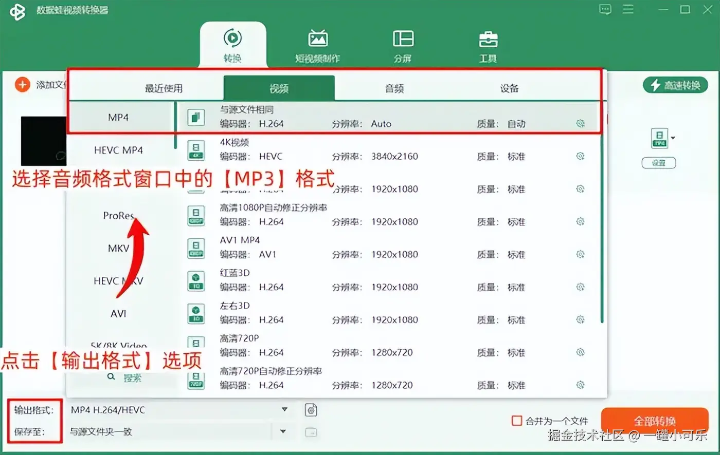 【转换MP3格式步骤】