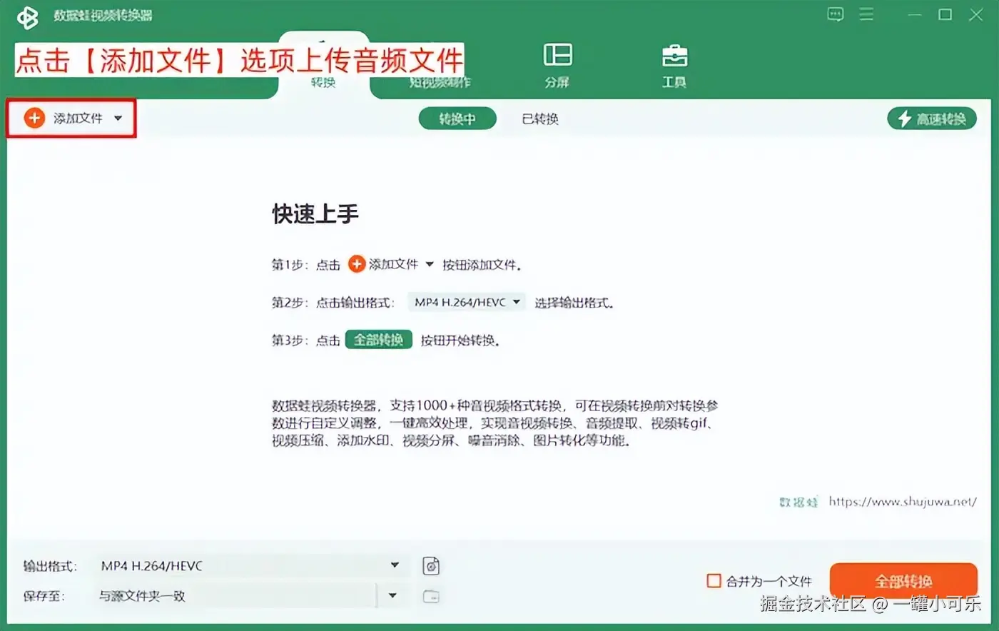 怎么把音频弄成MP3格式?小编建议大家使用专业的音频格式转换格式,专业的音频格式转换工具通常具有无损转换和加速转换的功能,既可以最大程度上减少在转换过程中对图片质量的磨损,也可以提高格式转换效率,如数据 蛙视频转换器工具。下面为大家介绍使用该工具将音频格式转换MP3格式的步骤。