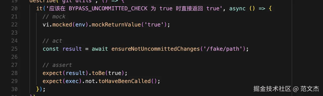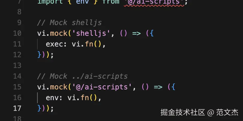 针对这类代码,在编写单测时需要额外注意,不能直接 import 模块,而是使用 vi.importActual 接口动态引入模块,例如: