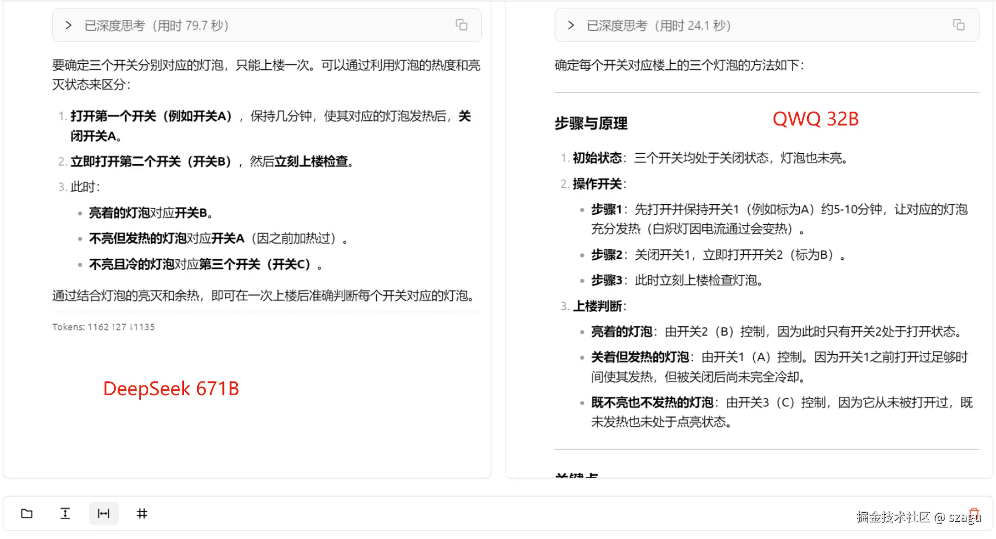 这个问题的逻辑性比较强, 从答案上QWQ明显更胜一筹, 在耗时上QWQ 也是仅用了 60%的时间