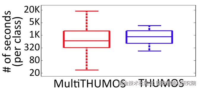 Multi-THUMOS 比 THUMOS 注释的每类帧和实例(标签的连续序列)数量范围更广