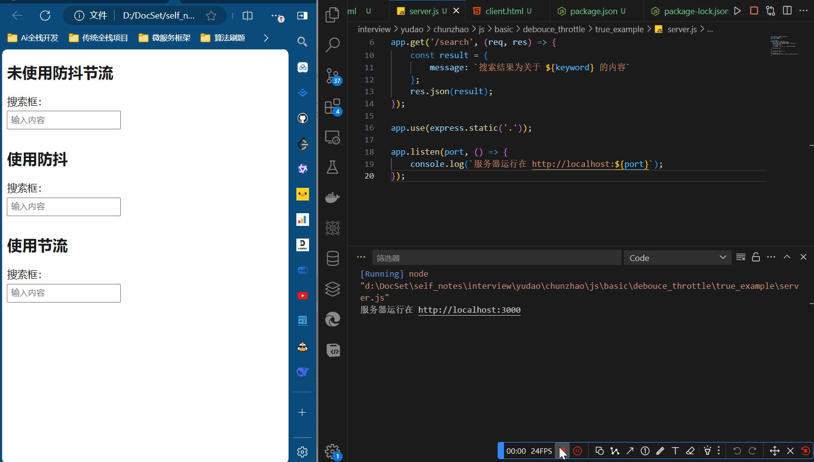 做一个前后端的实验来体验一下,防抖节流的操作。