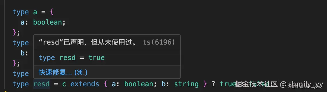 我们可以看到 resd 为类型为 true , 由此可以判断 c 的类型已经为 a 和 b 的合并类型
