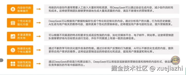DeepSeek与营销的结合具有巨大的潜力,可以提升营销效率、个性化体验、多渠道传播和创新探索。在应用时需要平衡人工创作和AI生成内容的结合,确保内容的质量、合规性和与品牌形象的一致性,以实现更好的营销结果。