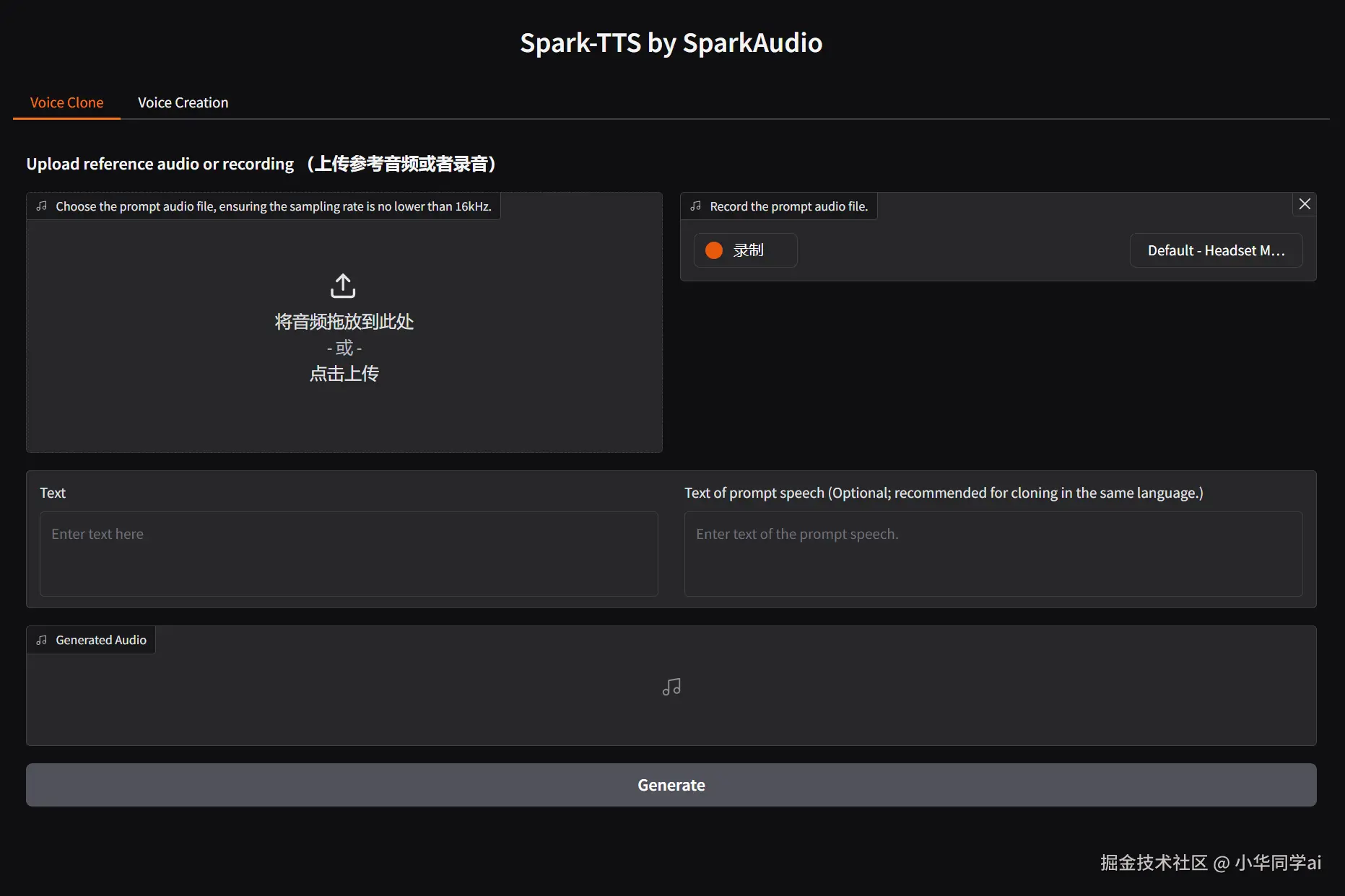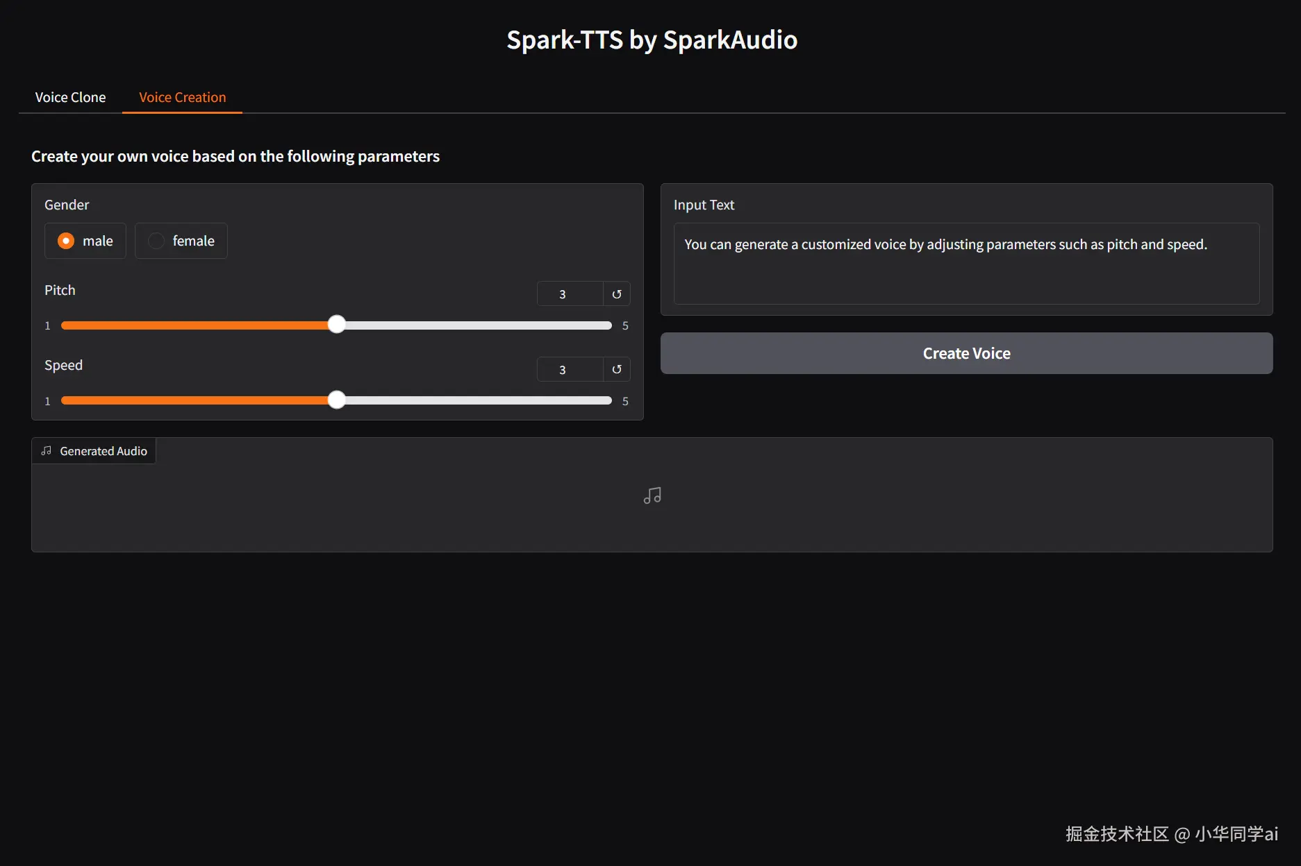 对于初次接触者,可以使用自带的 GUI 或命令行效果来感受 Spark-TTS 输出语音时的流畅度和逼真度。以下示例展示了可能存在的简单 UI 界面示意(若在项目仓库中有官方提供的截图或 Demo,可直接替换):