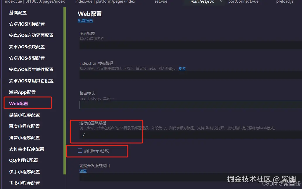去掉启用https协议: 不然会出现网络无法加载,去掉https不影响你请求后端的https协议。