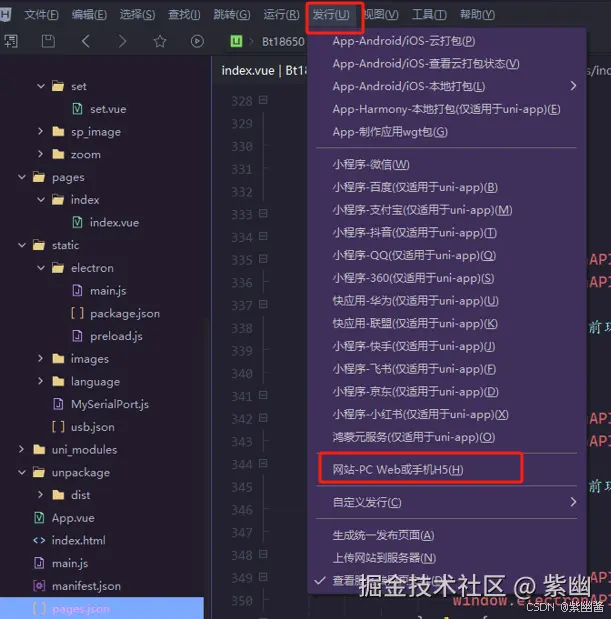 在 UniApp 项目的静态文件目录下创建一个 electron 文件夹,并在其中创建 main.js 文件,作为 Electron 的主进程文件。