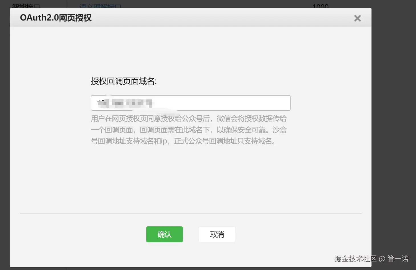 - 配置授权回调域名:登录微信公众平台,进入“开发 - 接口权限 - 网页服务 - 网页帐号 - 网页授权获取用户基本信息”,在这里设置授权回调域名。这个域名是微信授权后跳转的地址,必须正确配置,否则授权会失败。