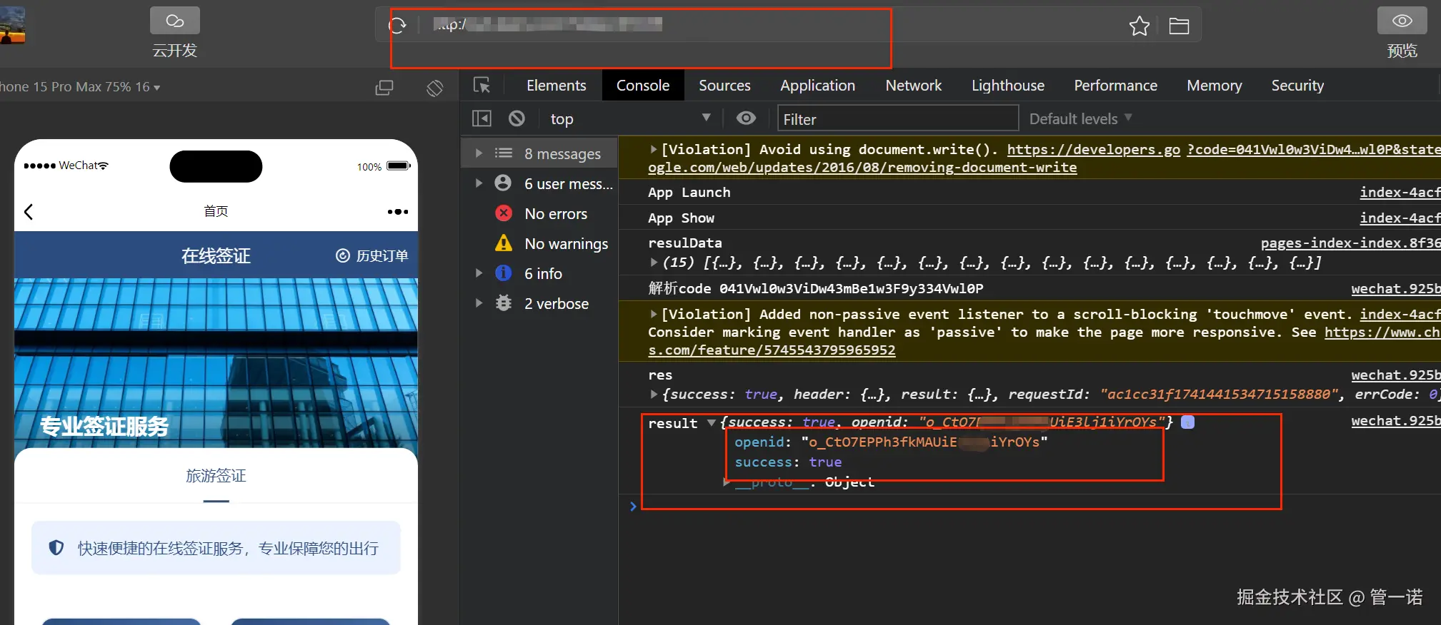 - 输入URL地址:在顶部工具栏输入你的H5页面地址,然后查看控制台打印的信息,确保已经获取到用户的