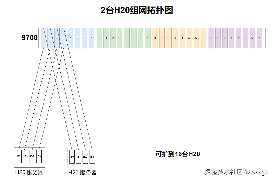 其中 NDR交换机 推荐使用 带R 的反向的交换机,这样的好处是 热风不会直接吹在光模块上从而减少光模块的故障率。 型号也需要是9700的不能是9790,9700的交换机是带管理功能的,可以直接在里面开启子网服务。 如果使用9790还需要额外配置UFM才能工作, 费用就会高很多。 MFP7E10-N007 为7米的MPO线 ,只有2台H20的情况下 ,我们是建议 H20和交换机放在同一个机柜或者相邻的机柜, 这样7米的mpo线也足够长度使用的了。 800G光模块是插在9700交换机上的, 400G光模块是用在H20的IB网卡上的。