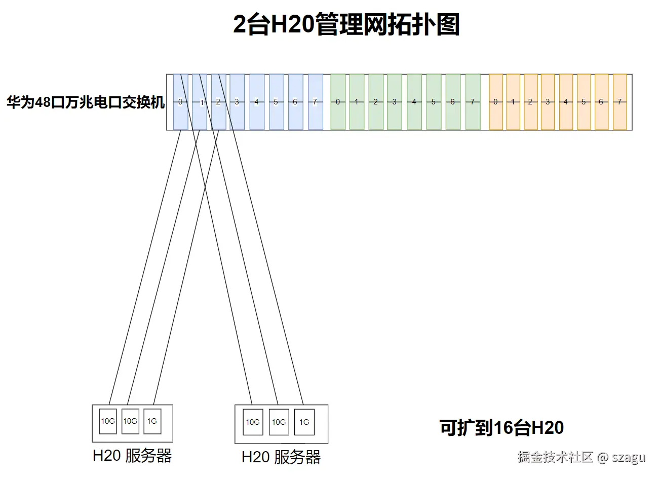 管理网络包括带内和带外,由于H20配置的是10G*2 的网卡, 和一个千兆的BMC管理口。 因此我们需要配置一台万兆的RJ45的交换机。 至于端口数24口和48口都可以, 因为只有2台H20, 如果为了扩的话可以配满48口。 我这里选的是华为的48电口的CE6857F-48T6CQ 交换机。