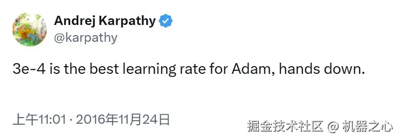 Andrej Karpathy 曾表示 3e-4 是 Adam 的最佳学习率