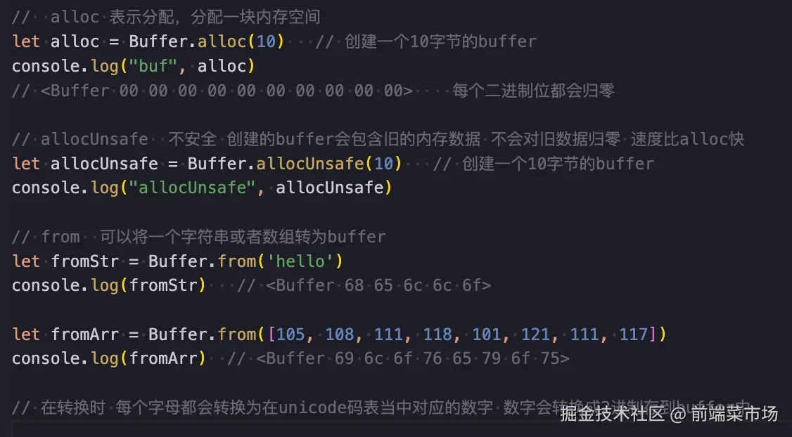 let alloc = Buffer.alloc(10) // 创建一个10字节的buffer