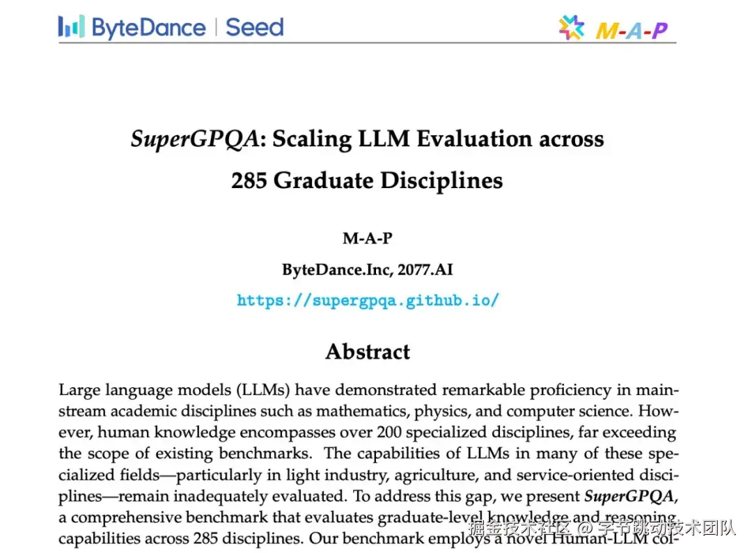 为突破以上限制,豆包大模型团队和 M-A-P 历时半年推出 SuperGPQA,一项全面的基准测试,实现 285 个研究生级学科全覆盖,旨在探索最先进的大语言模型潜力边界。