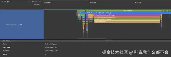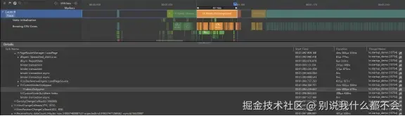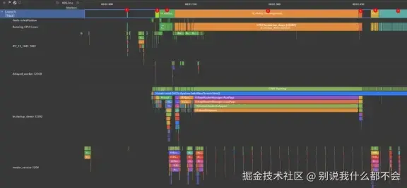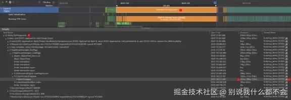 - “Static Initialization”子泳道:展示启动过程中各静态资源库的加载耗时;