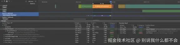从“Launch”泳道可以很明显的看出UI Ability OnForeground阶段的耗时占据应用冷启动过程的大部分时间,如下图
