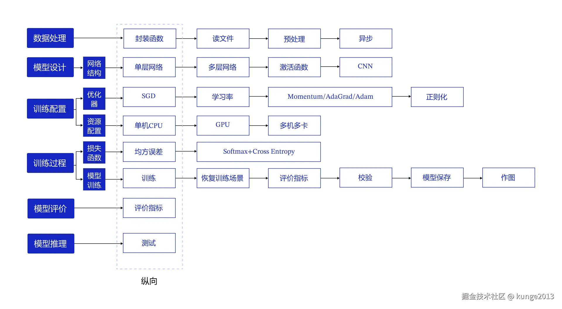 在本教程中,我们采用了专门为读者设计的创新性的“横纵式”教学法进行深度学习建模介绍,如 图4 所示。
