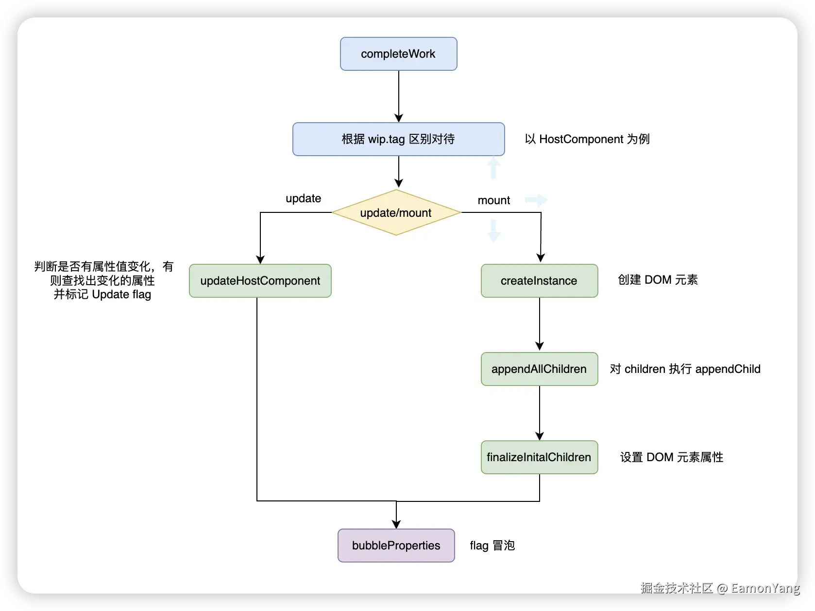 无法复用的 update 流程和 mount 流程大体一致,主要区别在于是否会生成带副作用标记 flags 的 FiberNode