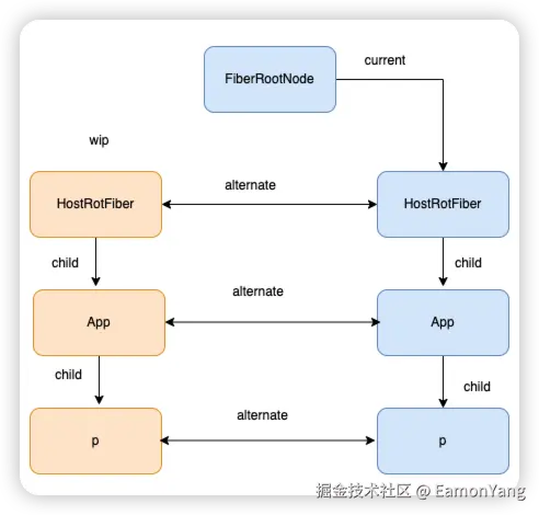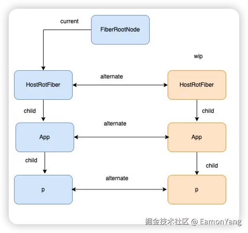 - currentFiberNode 与 wip 之间的切换