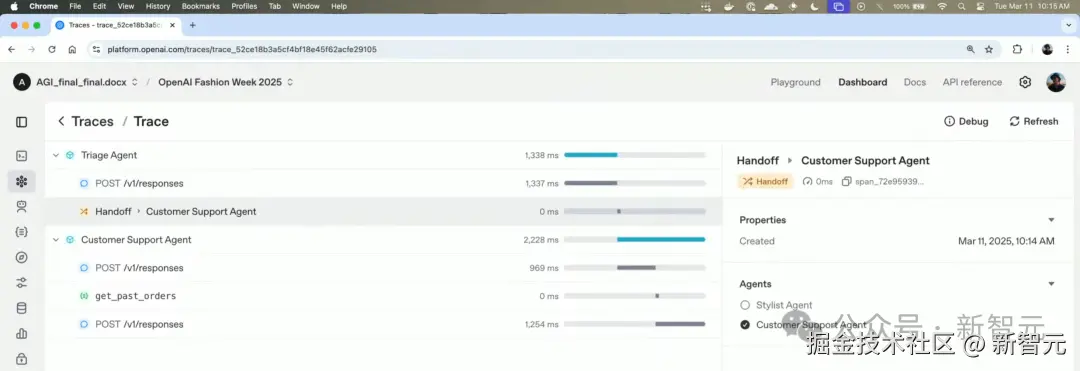 本来这种情况需要手动添加调试语句的,但 Agents SDK 的一大优势就是内置了监控和追踪功能。