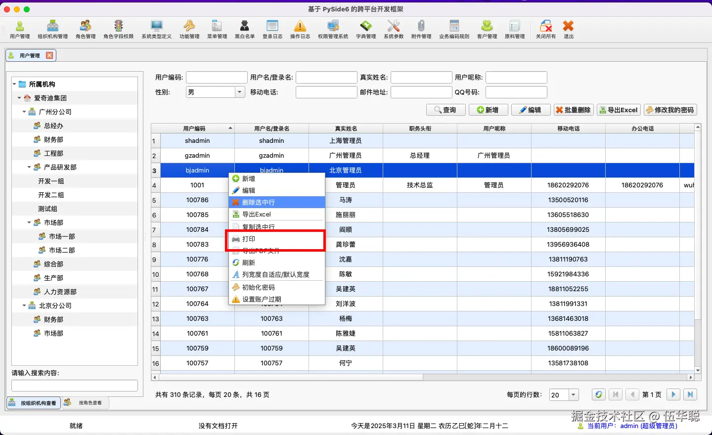 我曾经在前面使用WxPython开发跨平台应用程序的时候,写了一篇《WxPython跨平台开发框架之列表数据的通用打印处理》,介绍在WxPython下实现表格数据分页打印处理的过程,在Windows下和MacOS测试效果表现一致。然后在WxPython跨平台的基础上,我利用类似WxPhon的程序框架,使用PySide6/PyQt6实现了另一套跨平台的程序开发,功能上更是比WxPython的实现更加细致和完善了,本篇随笔介绍使用PySide6/PyQt6实现Python跨平台表格数据分页打印预览处理。