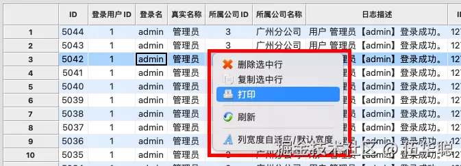 同样我们是在表格展示上给出通用的打印菜单入口,如上图所示,作为答应预览的统一入口。
