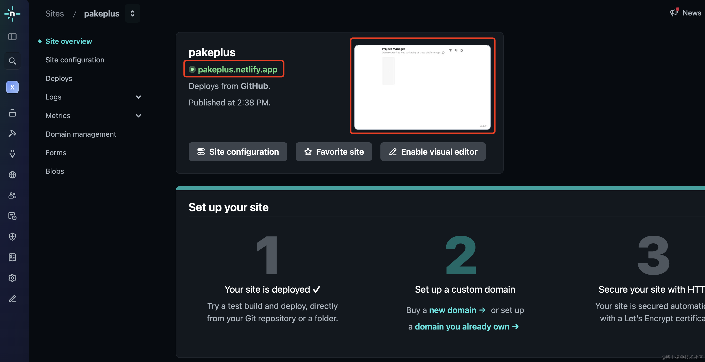 提供简洁的部署流程和丰富功能,如自定义域名、自动构建和服务器端功能。通过连接到 Git 仓库实现持续部署,每次推送代码都会自动构建和发布,支持无服务器函数,允许在前端项目中实现后端逻辑,提供直观的用户界面来管理和配置项目。netlify地址:www.netlify.com/