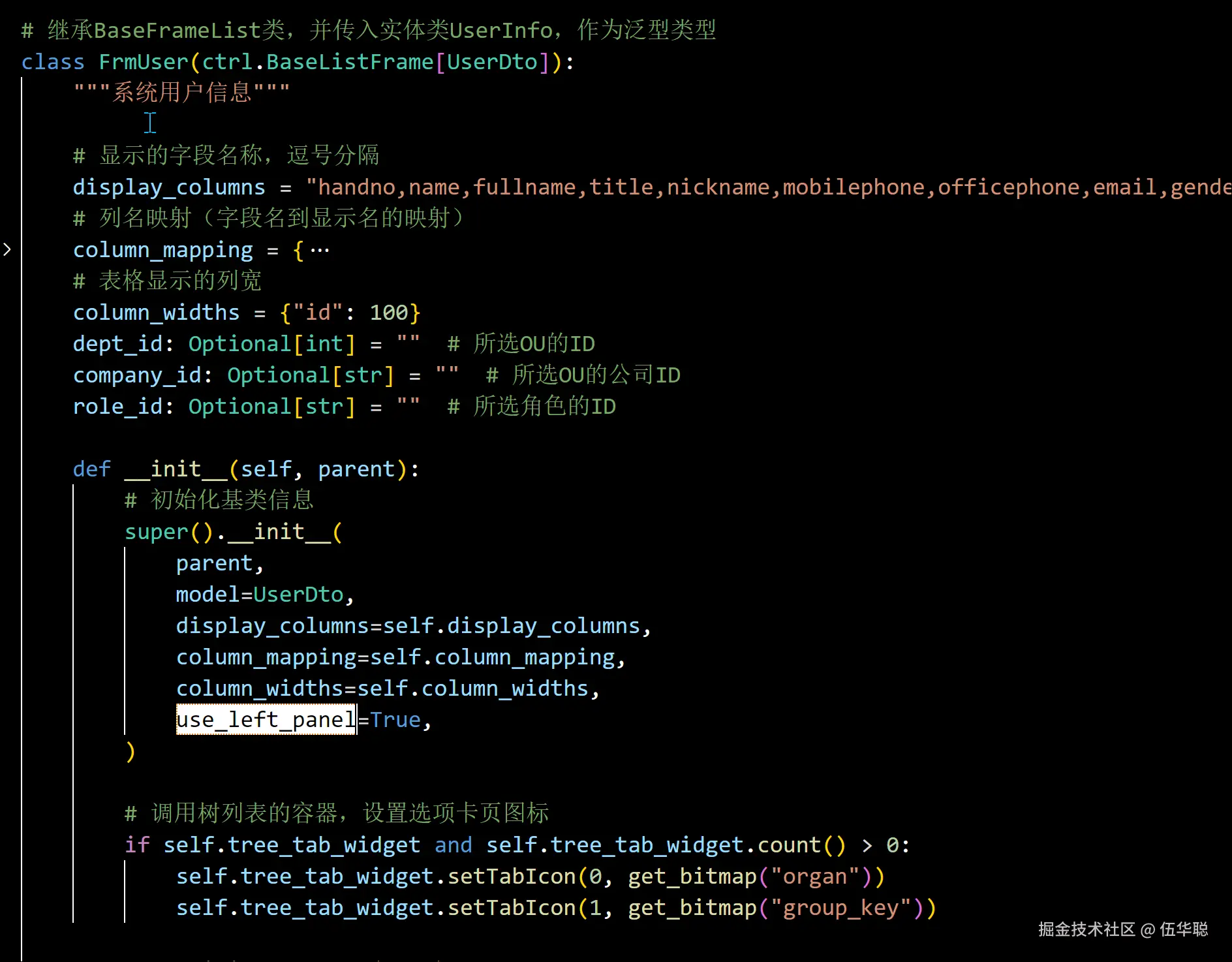 如对于上面展示的用户列表界面,这部分create_tree_panels 的代码实现如下所示。