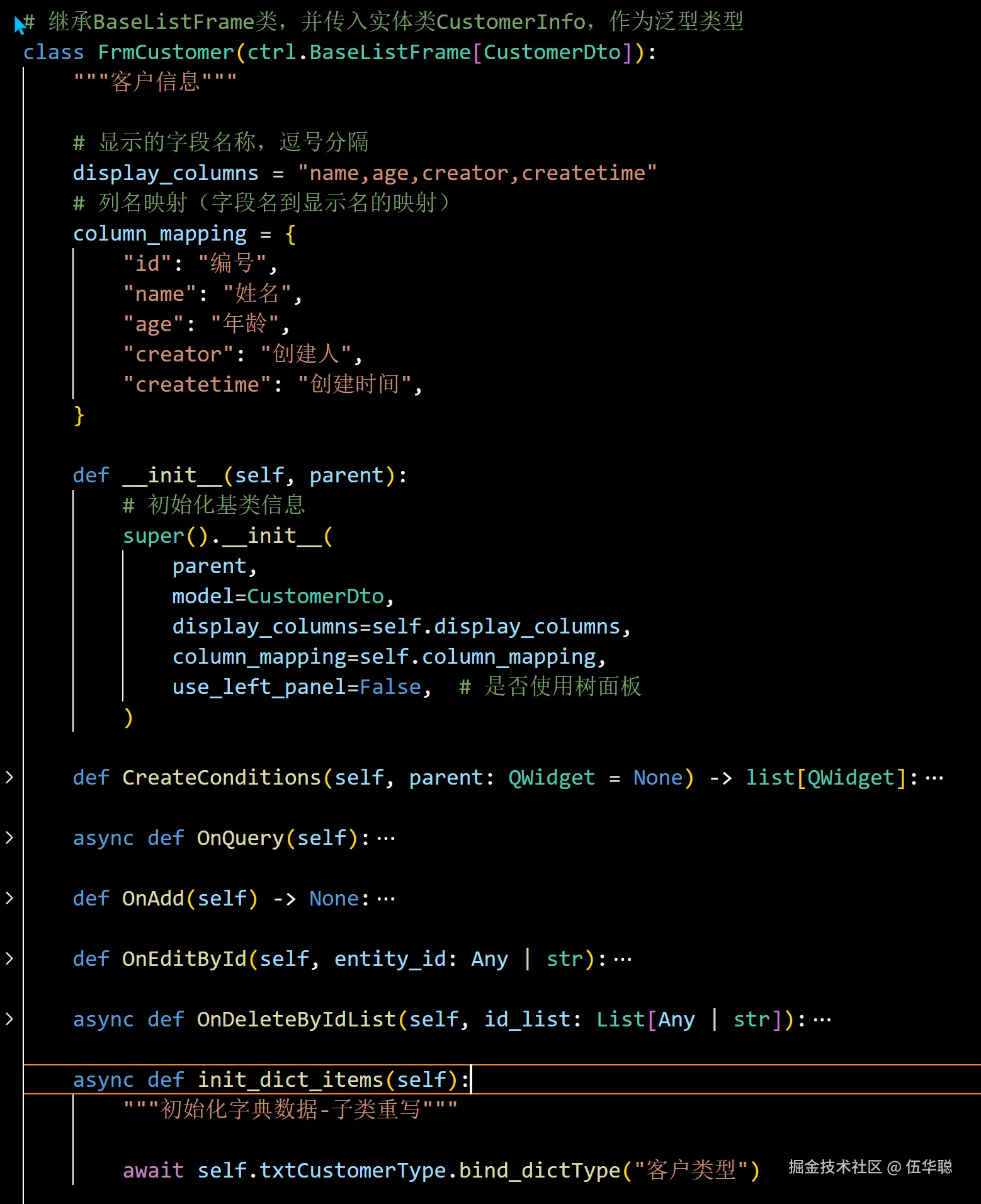 如对于简单的业务表,客户信息表,它的子类只需要实现下面几个函数即可。