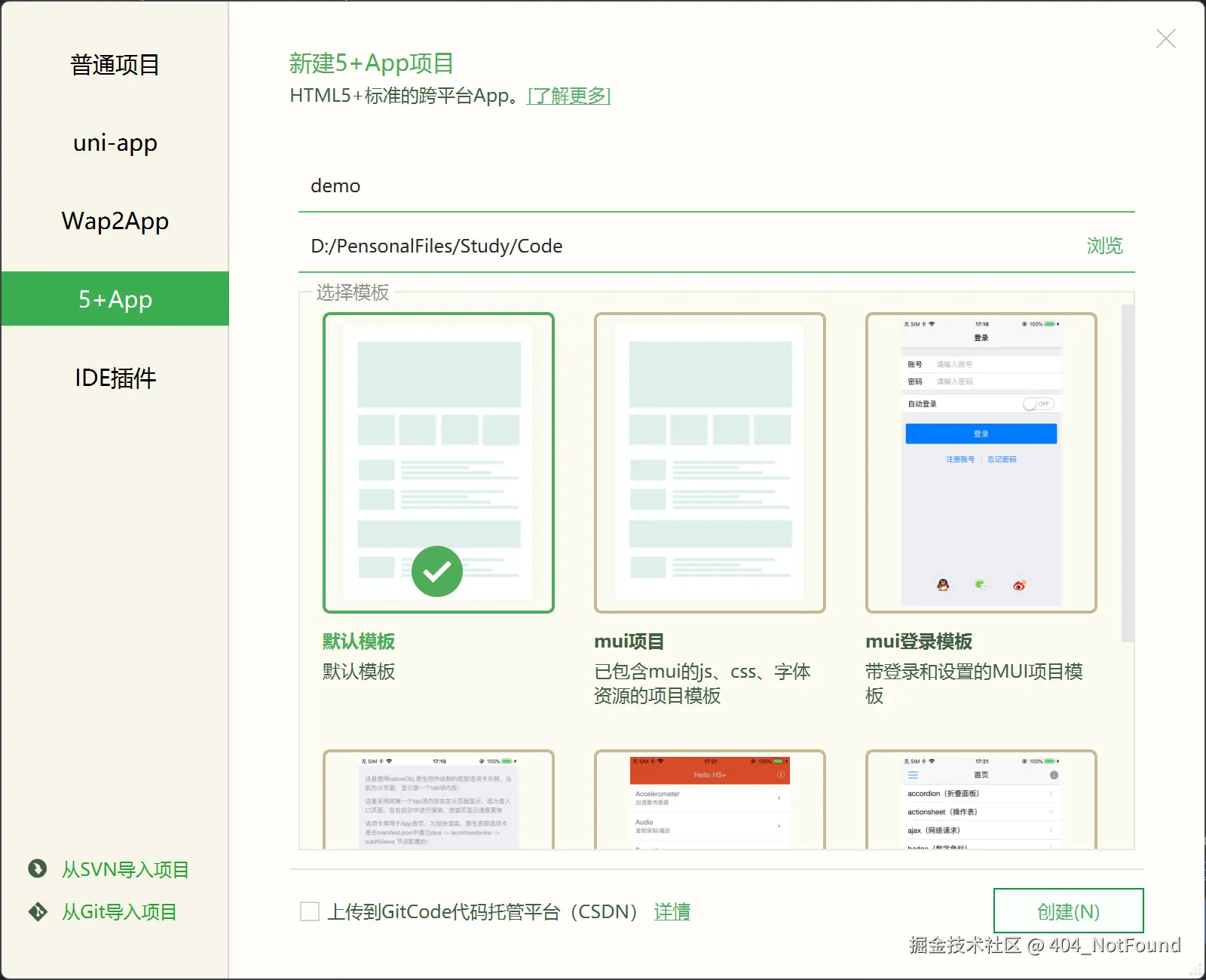 H5+App模板,如下图所示: -