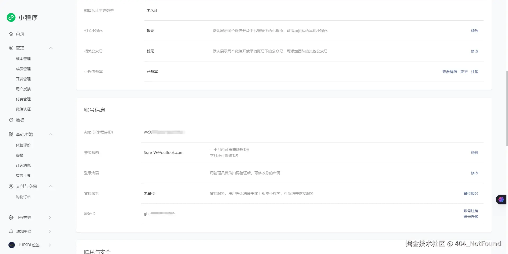 微信开放平台,以个人开发者身份申请小程序账号,获得小程序 ID,进行小程序备案未备案的小程序只能试发布三个月