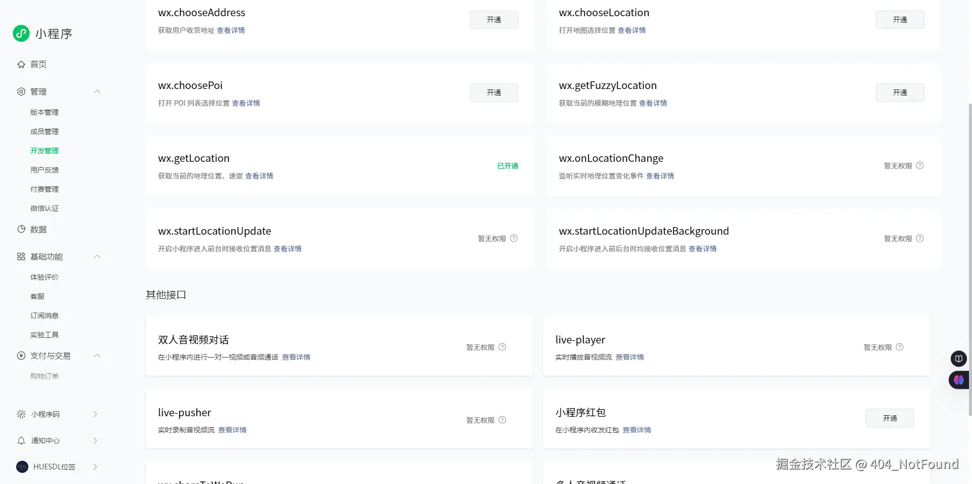 若有特殊功能需求(如地理位置等),需在微信小程序后台申请接口调用权限