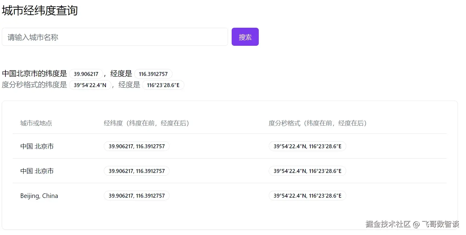 那就直接录入个测试数据试试,搜索下北京的地理坐标,同步维护到测试数据中。