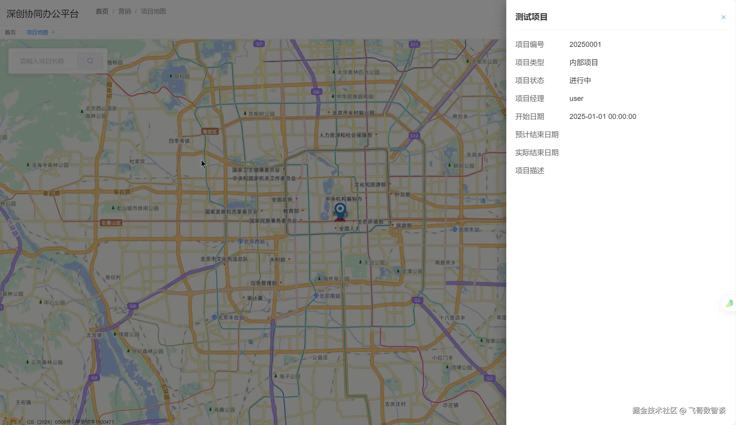 我们的项目在全国很多省市都有案例,为了方便我们自己快速了解项目分布,也为了给领导和客户汇报时直观展示,我们计划增加一个小功能:通过地图展示项目分布。