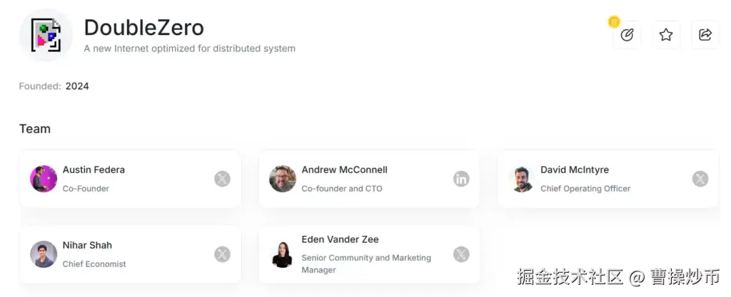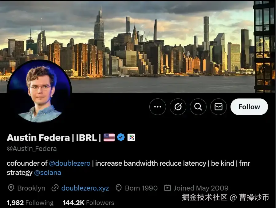 项目能够迅速获得市场关注,离不开创始人Austin Federa的强势背书。作为曾任Solana基金会战略主管的重要人物,他不仅深度参与了Solana生态的早期建设,还与Solana核心团队(包括Anatoly Yakovenko和Raj Gokal)保持着紧密联系。这层关系使得Double Zero在初期便获得了来自Solana生态的资源支持和市场认可。