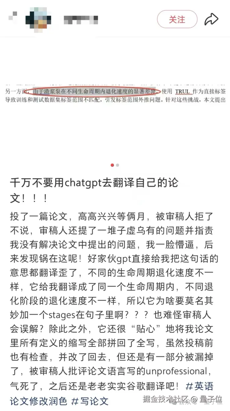 就以翻译领域为例,尽管通用模型可以解决一些普通翻译问题,但是大模型幻觉依旧存在,漏译、错译、多译的情况时有发生,对翻译准确性敏感的用户(比如科研人员),对大模型的翻译结果依旧无法完全信任。