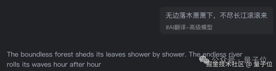在古诗翻译上,子曰 2.0 给出的译文更加传神、保留意境,同时还兼顾了押韵,进一步古诗词的韵味传递到英文之中,还有点翻译家许渊冲的味道在了。