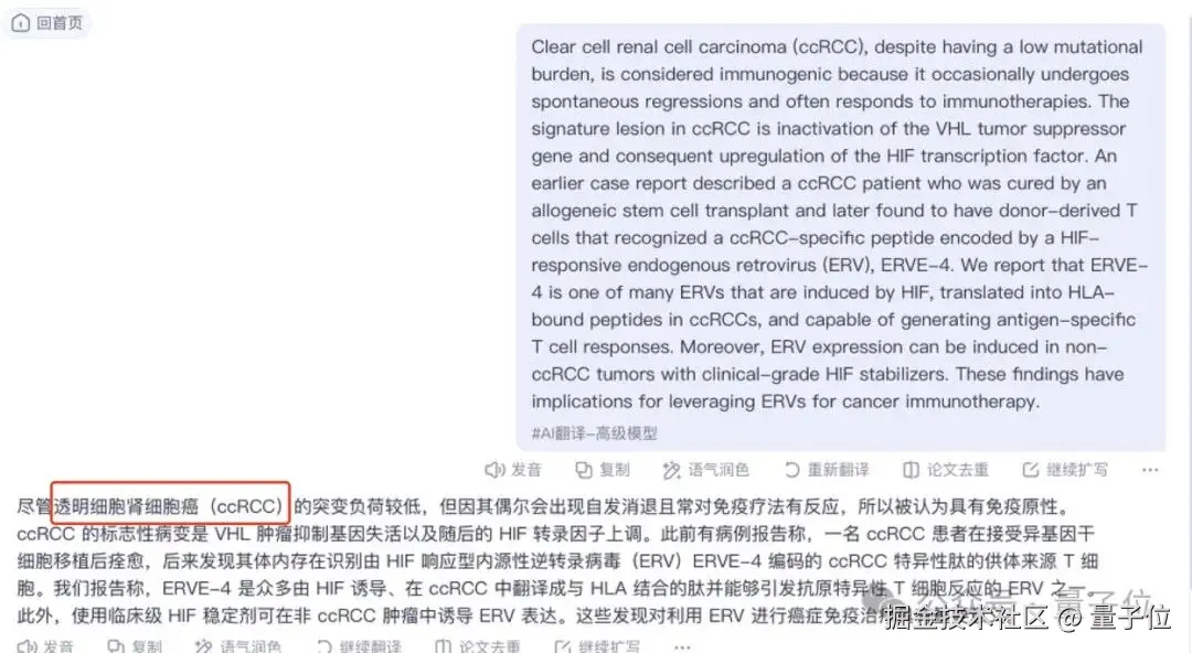 但是 Claude-3.7 却翻译成了 “清细胞肾细胞癌”。