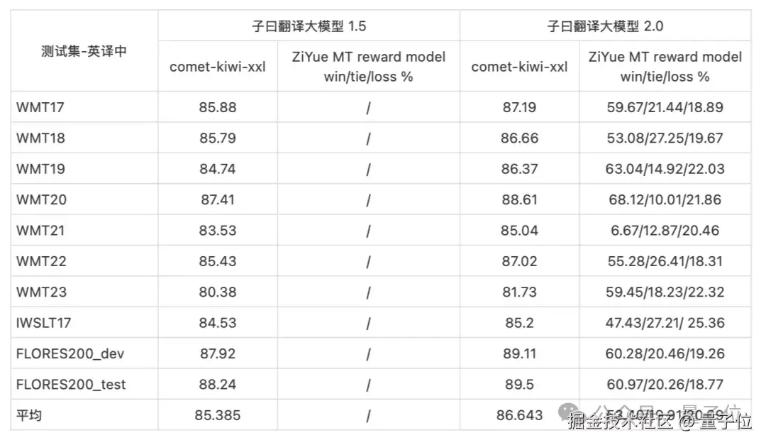 最后在评估维度,子曰 2.0 采用了自研翻译评估模型,其准确率超越当前最先进的评估指标 COMET,为翻译大模型性能评估提供可靠的量化数据。