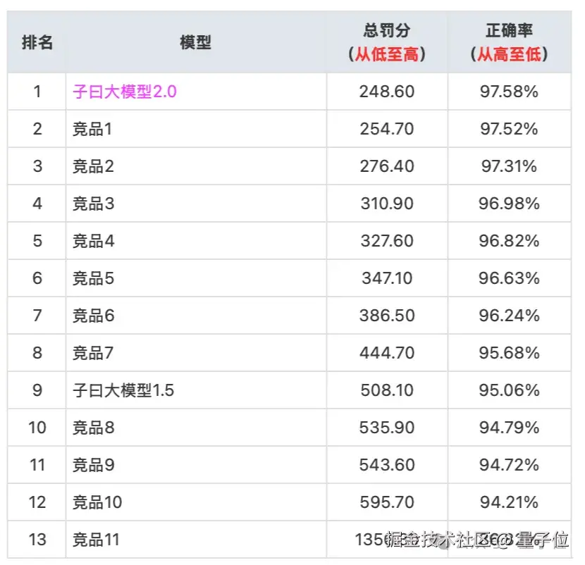 在更全面维度的评测中,子曰 2.0 的表现也值得关注。