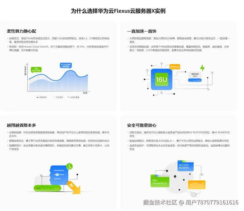 为进一步推动中小企业加速上云,华为云面向广大中小企业和开发者创新打造柔性算力云服务器——华为云Flexus X实例,带来了性能更优、成本更低的跃级体验,尤其适用于中负载业务,且期望资源灵活选配的中小企业和开发者。
